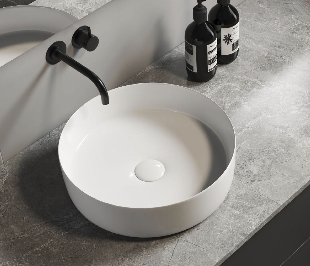 Minimalistyczna, elegancka umywalka nablatowa Aquaterris AQ-NBGWHRD-001 to idealne rozwiązanie do nowoczesnych łazienek, w których liczy się zarówno styl, jak i funkcjonalność. Jej okrągły kształt i gładka linia krawędzi tworzą harmonijną całość, która doskonale komponuje się z blatami z drewna, kamienia lub konglomeratu.
