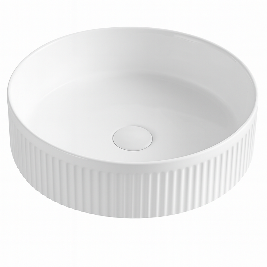 Nowoczesna umywalka nablatowa Aquaterris AQ-NBGWHRD-003 łączy minimalistyczny design z wyjątkowym detalem – subtelnymi pionowymi żłobieniami na zewnętrznej ściance, które nadają jej niepowtarzalny charakter. To idealny wybór do wnętrz, w których estetyka spotyka się z funkcjonalnością.