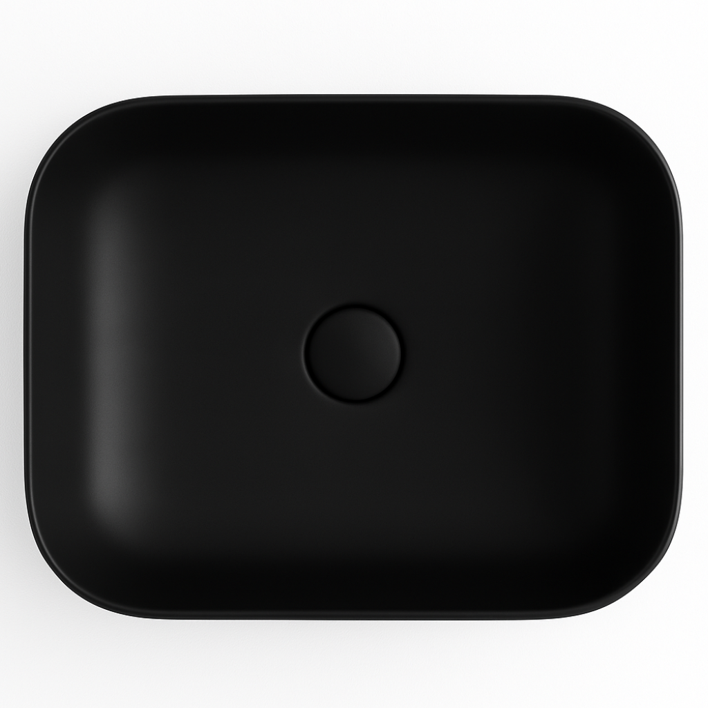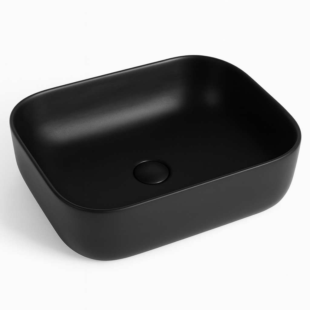 Wyrazista i elegancka umywalka nablatowa Aquaterris AQ-NBMBLSQ-001 w kolorze czarnym matowym to propozycja dla osób poszukujących nowoczesnego akcentu w aranżacji łazienki. Jej prostokątny kształt z zaokrąglonymi rogami łączy minimalistyczną formę z wyrafinowanym stylem, tworząc efektowny kontrast z jasnymi blatami i elementami armatury.